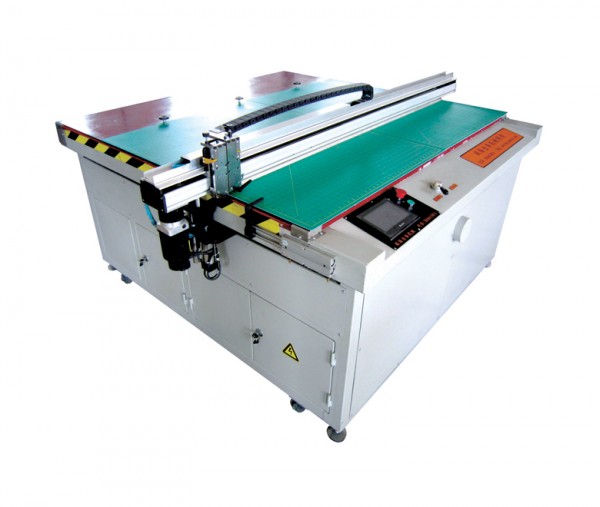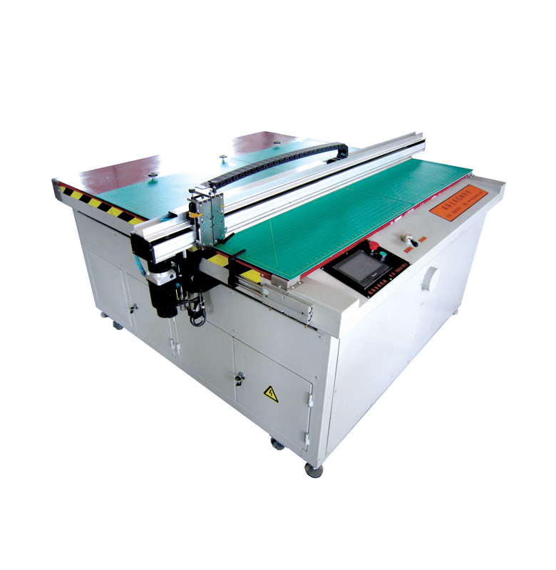 按加工要求在觸摸屏輸入大端尺寸、小端尺寸、長度尺寸、裁切數(shù)量,按下啟動按鈕,自動裁完整張布,也可以按照你的要求在一張布上裁出2個型號的小布。